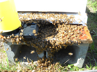 And finally, the bees. Steve had taken a beekeepers course in the spring of 2010, but the class finished sometime in May and it was rather late to order bees and we weren't really prepared for the start-up costs either. After the fair in 2010, bees were something that we really wanted to add to the farm and Steve continued to read up on the topic. We purchased a couple of hives in early 2011 and picked up our first package of bees in April of 2011. It was a new experience for both of us, especially since the beekeepers course involved only lectures and theory, no actual bees. I stood back about 30 feet or so snapping dozens of pictures... I felt like I was sending my child off to kindergarten, watching Steve with his first bees. I told the girls that this was a big moment: there would never be another first time Daddy installed his first bees. That was a really cool day.